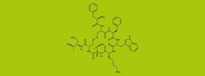 COMPLEX PEPTIDES Octreotide Formula: C49H66N10O10S2 Molar mass: 1,019.24 g/mol Trade Name: Sandostatin